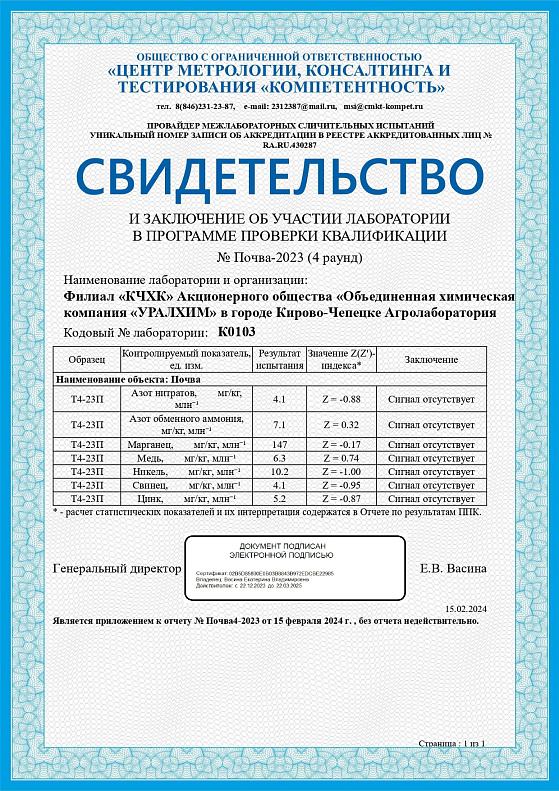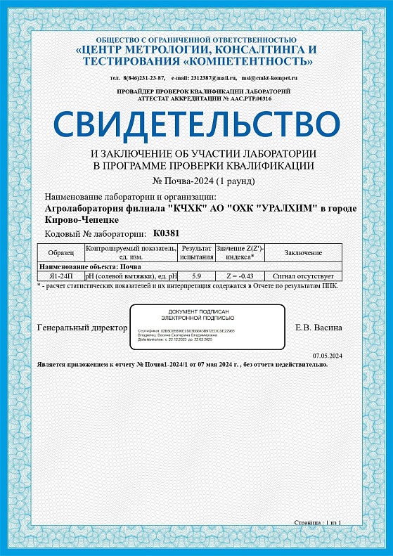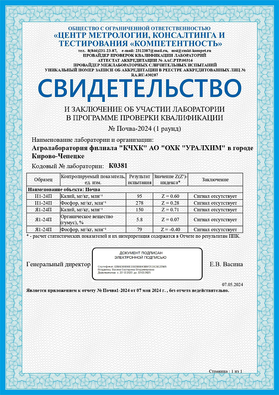 Высокий уровень агрохимической и агрономической экспертизы кадров